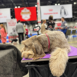 The competition was fierce, with many gorgeous Spinoni vying for the same title. Mochi’s success reflects not only her excellent conformation but also the commitment of our training and to her breeder Julia Grandt. Achieving a championship title at the AKC National Championship is a testament to her quality and potential and she's definitely a bitch to look out for in the future.